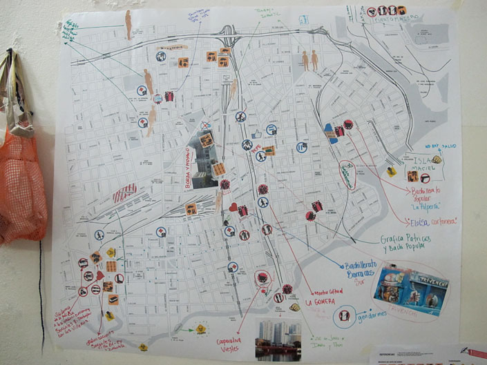 Mapa de problemáticas y sueƱos del Barrio de Barracas en la ciudad de Buenos Aires, realizado por vecinos que asisten a escuelas populares para adultos.